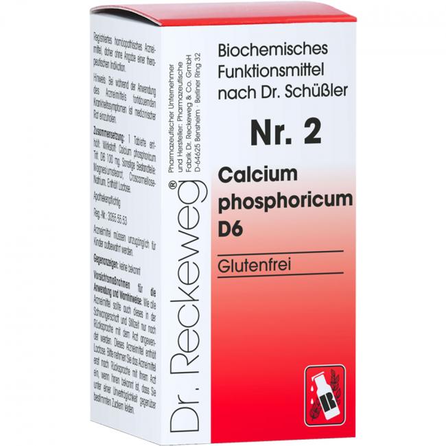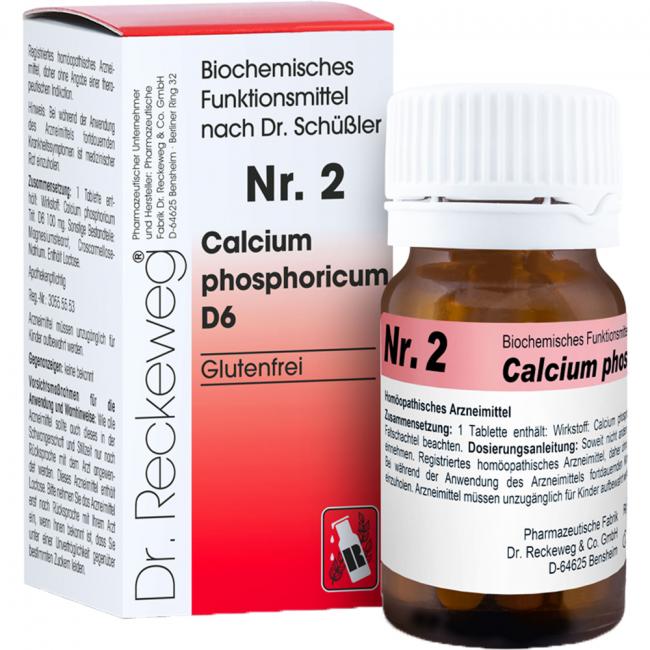 Biochemisches Funktionsmittel nach Dr. Schüßler Nr. 2 Calcium phosphoricum D6, Tabletten. Anwendungsgebiete: Registriertes homöopathisches Arzneimittel, daher ohne Angabe einer therapeutischen Indikation.