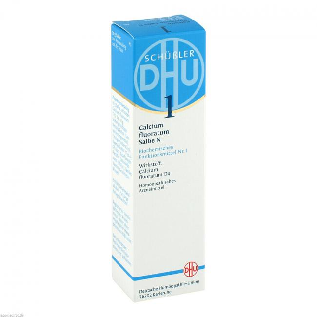 Biochemisches Funktionsmittel Nr. 1 Calcium fluoratum Salbe N. Anwendungsgebiete: Registriertes homöopathisches Arzneimittel, daher ohne Angabe einer therapeutischen Indikation.