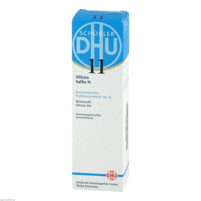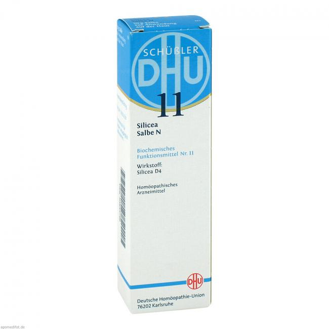 Biochemisches Funktionsmittel Nr. 11 SiliceaSalbe N. Anwendungsgebiete: Registriertes homöopathisches Arzneimittel, daher ohne Angabe einer therapeutischen Indikation.