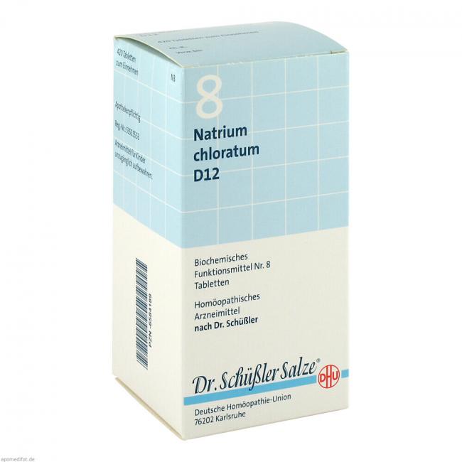 Biochemie Dhu 8 Natrium Chloratum D 12 Biochemisches Funktionsmittel Nr. 8 ist ein homöopathisches Arzneimittel. Registriertes homöopathisches Arzneimittel, daher ohne Angabe einer therapeutischen Indikation.