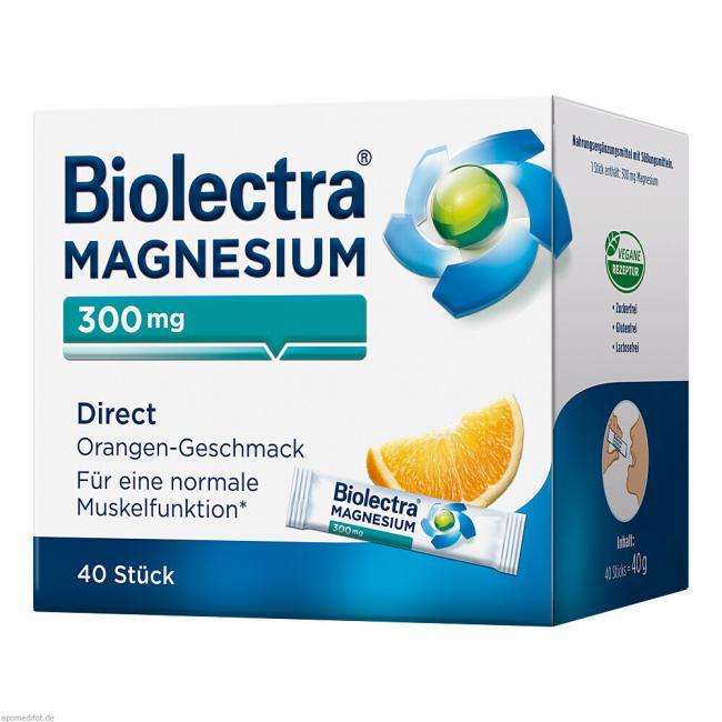Pflichtangaben BIOLECTRA Magnesium 300 mg Direct Orange Sticks, 40 Stück