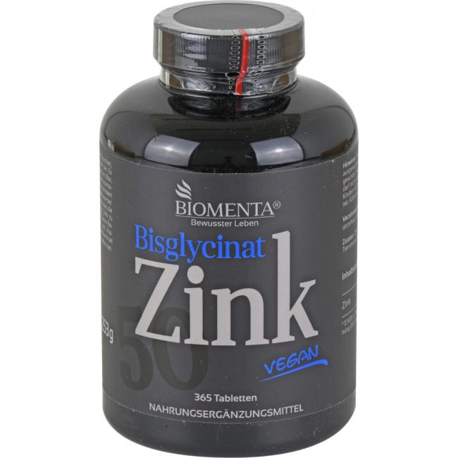 Pflichtangaben BIOMENTA Zink 50 vegan 25 mg je 1/2 Tablette, 365 Stück