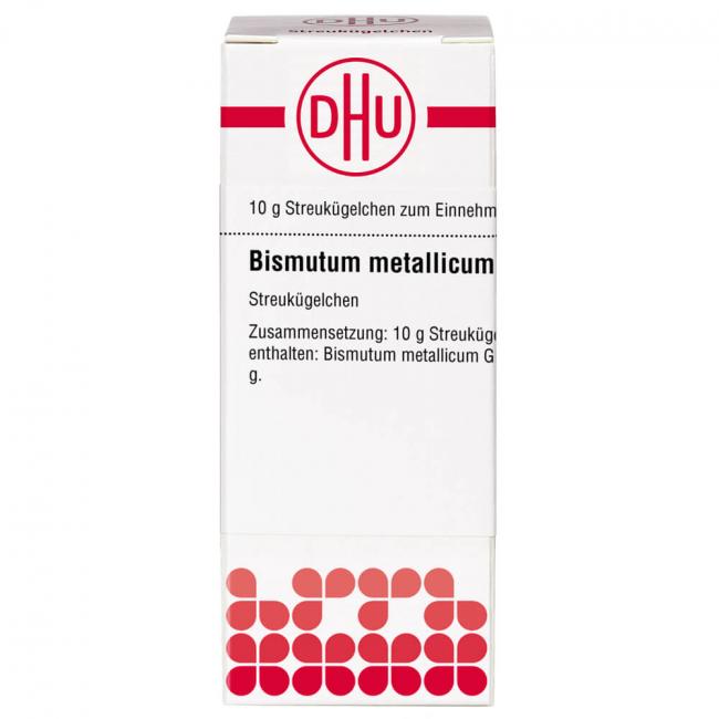 Bismutum metallicum C 200. Anwendungsgebiete: Registriertes homöopathisches Arzneimittel, daher ohne Angabe einer therapeutischen Indikation. Warnhinweis: Dieses Arzneimittel enthält Sucrose (Saccharose / Zucker).