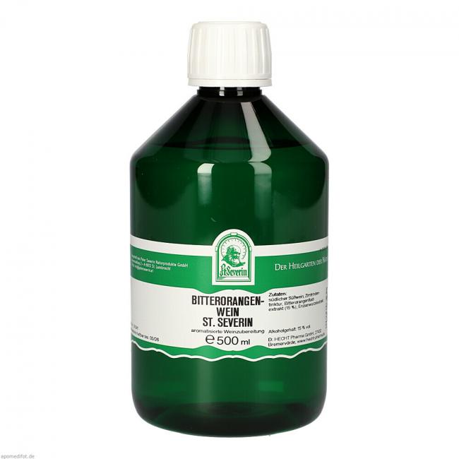 Bitterorangenwein St. Severin enthält Bitterorangenfluidextrakt (15%) Zimttinktur und Enzianwurzelextrakt, gemischt mit Südlichem Süßwein. Es werden ausschließlich hochqualitative Rohstoffe verwendet. Alkoholgehalt: 18% vol. Allergene: keine