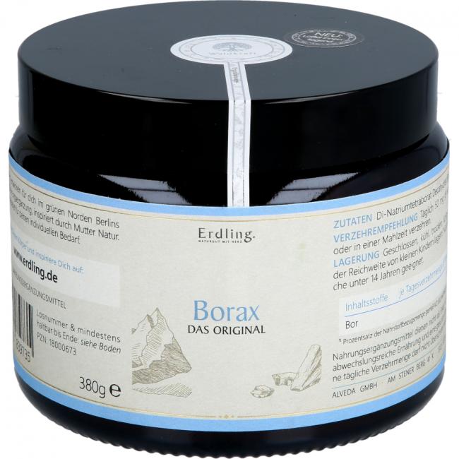 Pflichtangaben BORAX PULVER Natriumtetraborat rein vegan Erdling, 380 Gramm