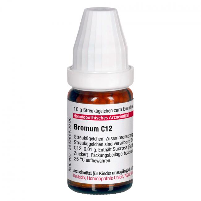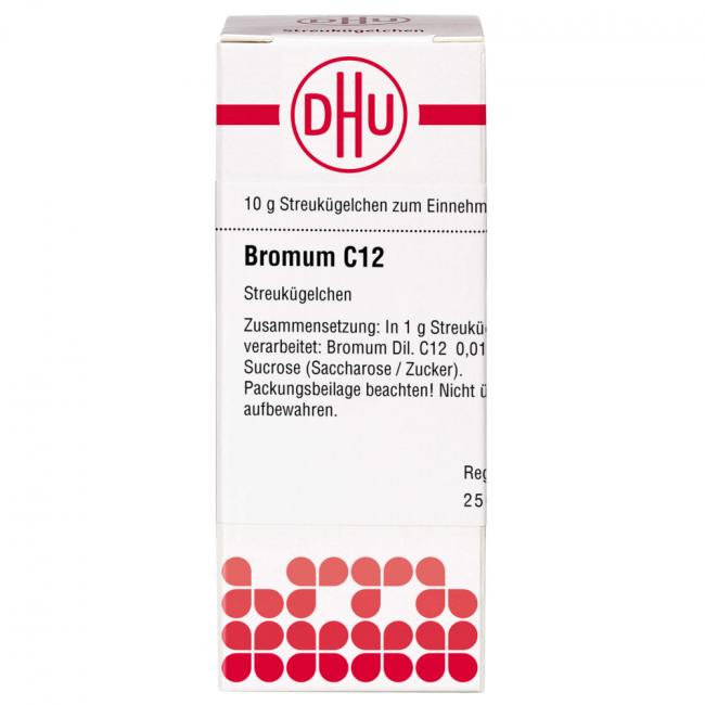 Bromum C 12. Anwendungsgebiete: Registriertes homöopathisches Arzneimittel, daher ohne Angabe einer therapeutischen Indikation. Warnhinweis: Dieses Arzneimittel enthält Sucrose (Saccharose / Zucker).
