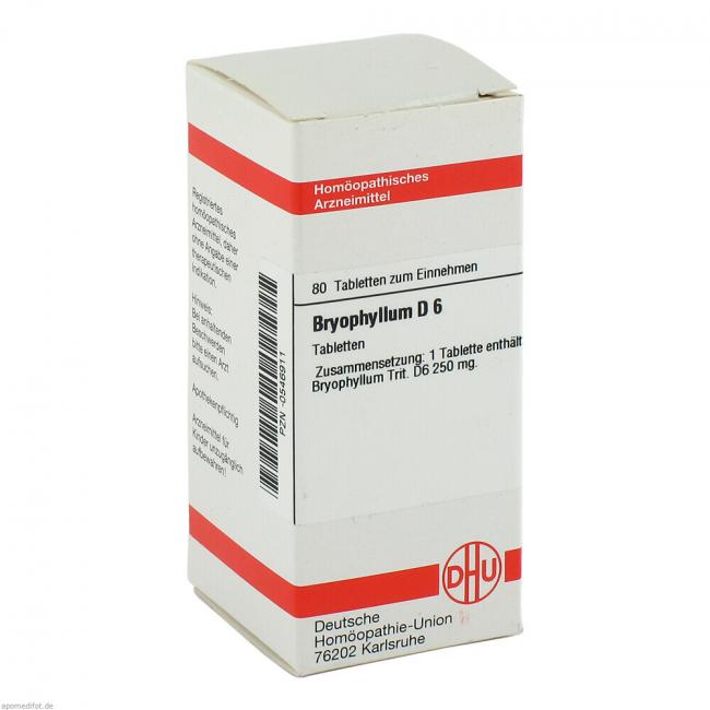 Bryophyllum D 6. Anwendungsgebiete: Registriertes homöopathisches Arzneimittel, daher ohne Angabe einer therapeutischen Indikation. Warnhinweis: Enthält Lactose und Weizenstärke.