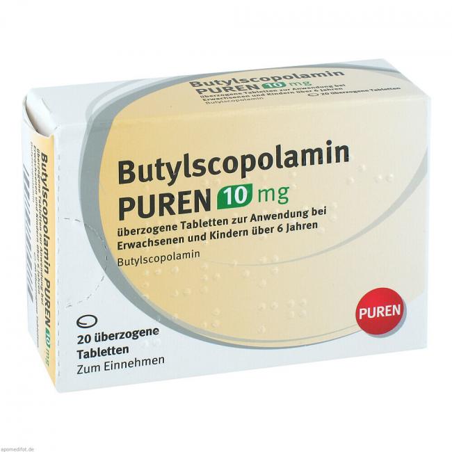 Pflichtangaben BUTYLSCOPOLAMIN PUREN 10 mg überzogene Tab., 20 Stück