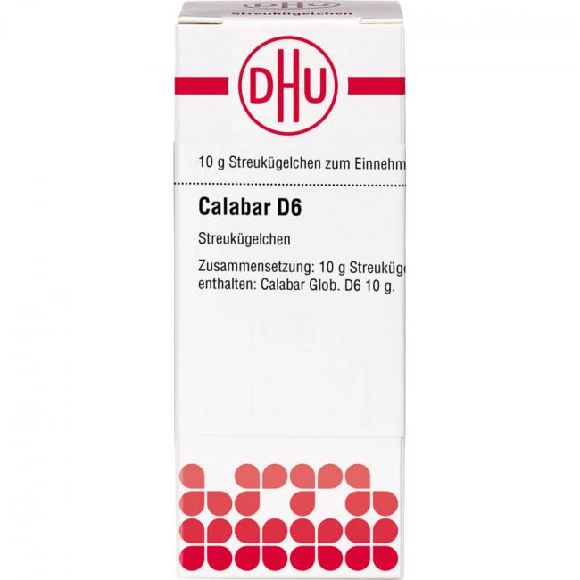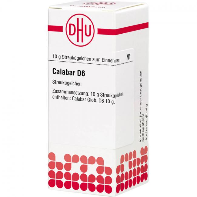 CALABAR D 6 Globuli. Anwendungsgebiete: Anwendungsgebiete: Registriertes homöopathisches Arzneimittel, daher ohne Angabe einer therapeutischen Indikation. Warnhinweis: Dieses Arzneimittel enthält Sucrose (Saccharose / Zucker).
