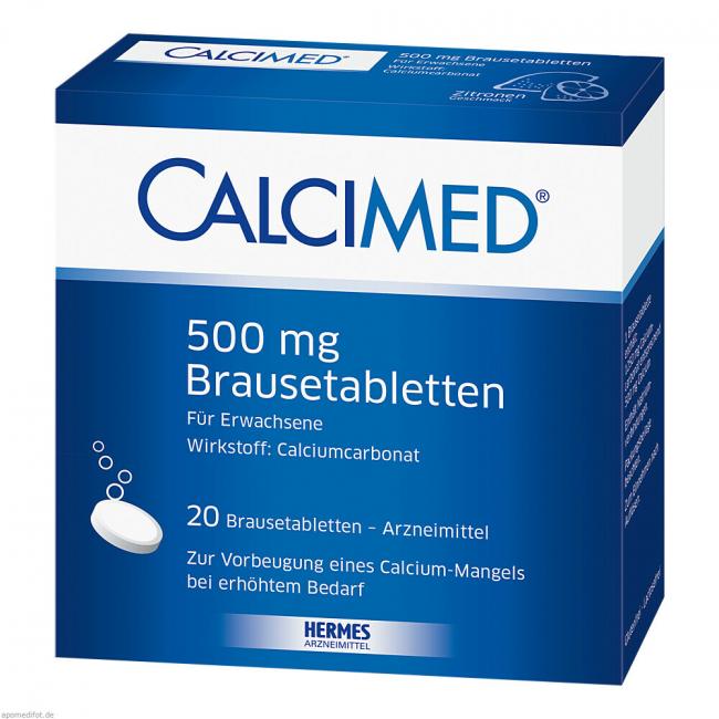 Calcimed 500 mg Brausetabletten Wirkstoff: Calciumcarbonat. Anwendungsgebiete: Zur Vorbeugung eines Calciummangels bei erhöhtem Bedarf (z.B. Wachstumsalter, Schwangerschaft, Stillzeit) und zur unterstützenden Behandlung der Osteoporose. Warnhinweise: Enthält Natrium, Sorbitol und Benzylalkohol.