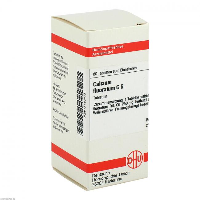 Calcium Fluoratum C 6. Anwendungsgebiete: Registriertes homöopathisches Arzneimittel daher ohne Angabe einer therapeutischen Indikation. Warnhinweis: Enthält Lactose (Milchzucker) und Weizenstärke.