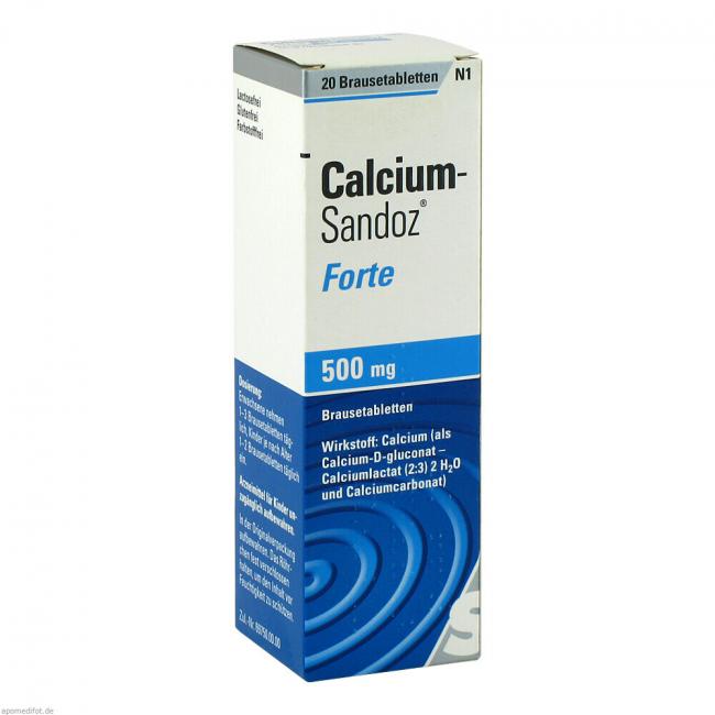 Zum Einnehmen nach Auflösen in Wasser. Lösen Sie Calcium-Sandoz Forte 500 mg in einem Glas Wasser (ungefähr 200 ml) auf und trinken Sie den Inhalt sofort nach Auflösen der Brausetablette. Calcium-Sandoz Forte 500 mg kann zusammen mit oder ohne Nahrung eingenommen werden.