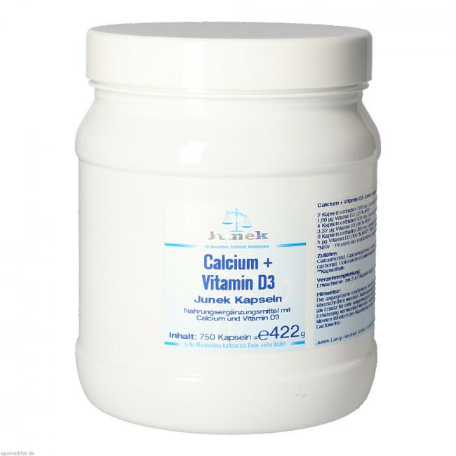 Pflichtangaben CALCIUM+VITAMIN D3 Junek Kapseln, 750 Stück