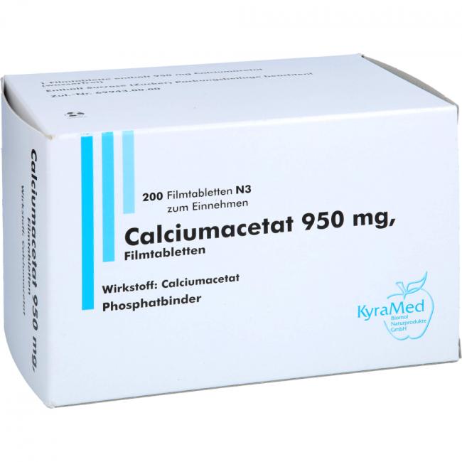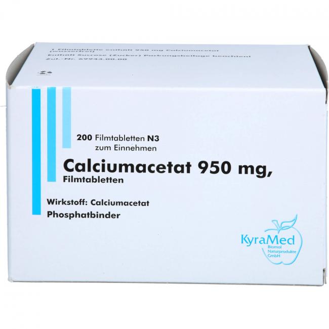 Calciumacetat KyraMed 950 mg. Anwendungsgebiete: Hyperphosphatämie bei dialysepflichtiger chronischer Niereninsuffizienz (Phosphatbinder), Calciumsupplement.