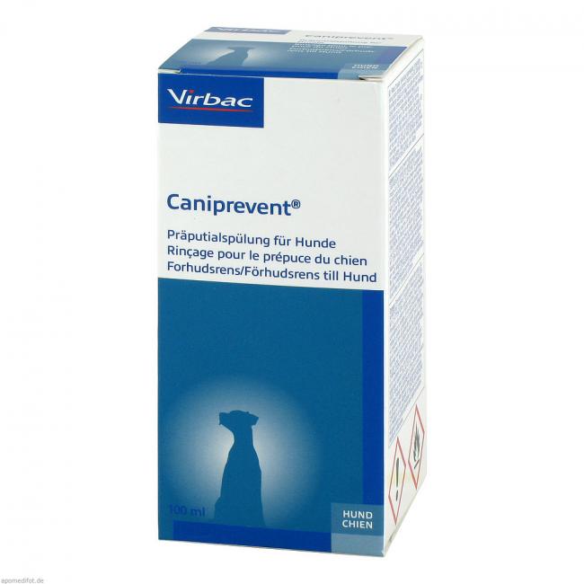 Die Vorhautöffnung mit Caniprevent getränkter Watte oder Zellstoff reinigen. Anschließend 10 ml Caniprevent mit beigelegter Spritze aufziehen und die Plastekanüle aufsetzen. Mit der einen Hand die Vorhaut festhalten, mit der anderen Hand die Kanüle zwischen Vorhaut und Penis einführen. Den Inhalt der Spritze in die Hautfalte drücken. Gleichzeitig die Vorhautöffnung mit den Fingern verschließen und mit der anderen Hand in der Vorhautfalte verteilen. Danach die Flüssigkeit ablaufen lassen. Dieser Vorgang sollte an drei aufeinander folgenden Tagen wiederholt werden.