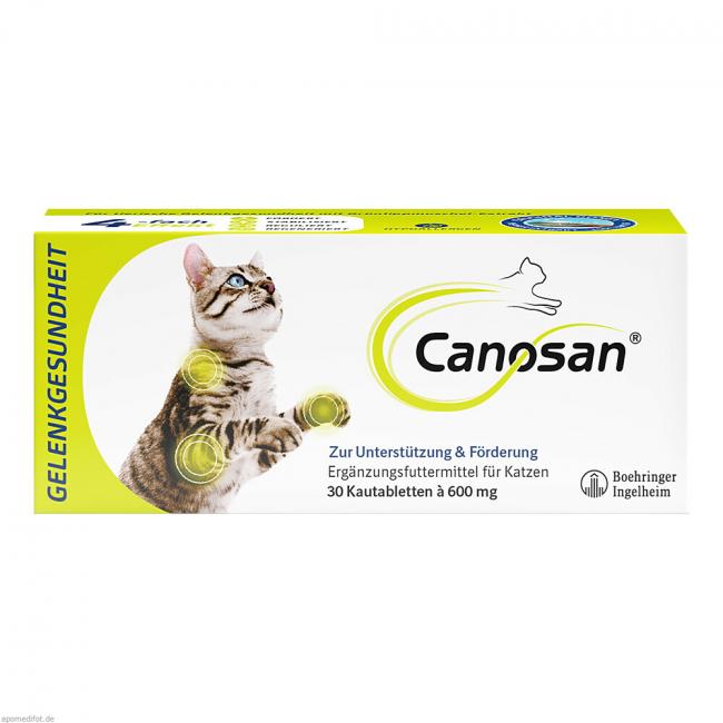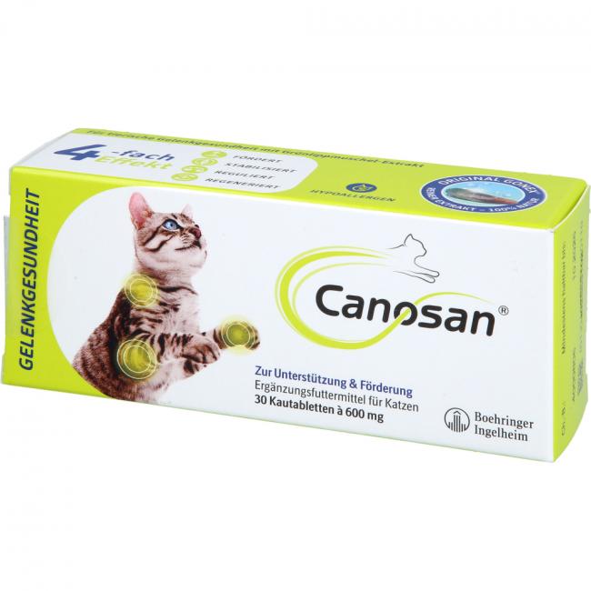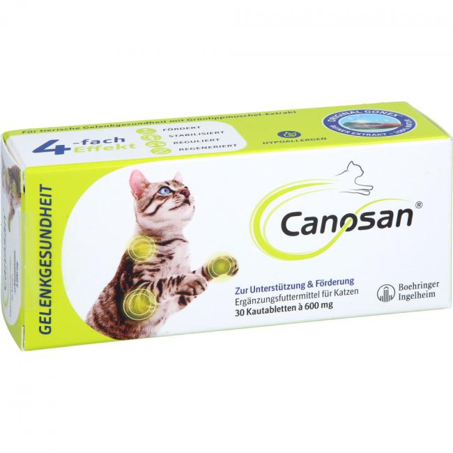 Canosan Katze ist ein Ergänzungsfuttermittel in Tablettenform, das den Körper mit wichtigen Bausteinen für den Gelenkstoffwechsel unterstützt. Canosan Katze wurde extra den Bedürfnissen der Samtpfoten angepasst - die Kautabletten sind klein, schmackhaft und im praktischen Blister als Monatspackung erhältlich.