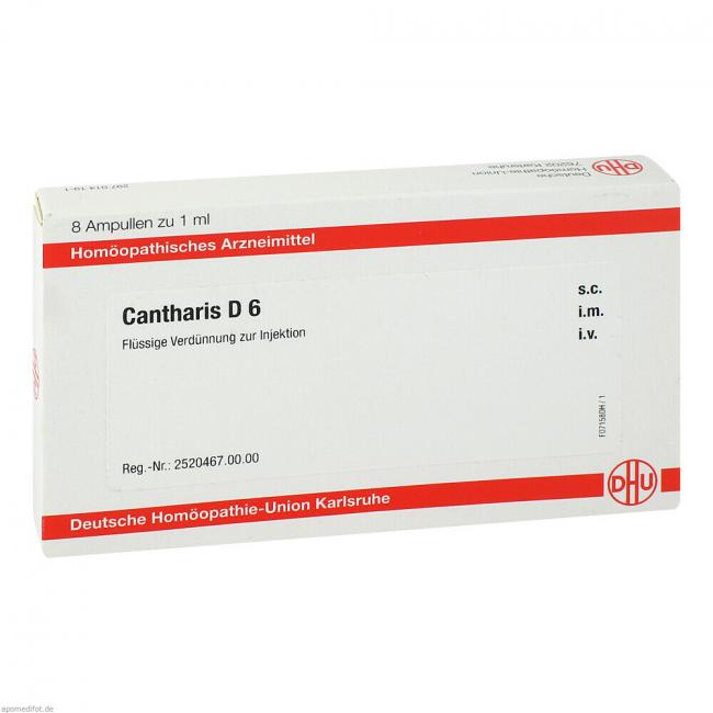 Cantharis D 6. Anwendungsgebiete: Registriertes homöopathisches Arzneimittel, daher ohne Angabe einer therapeutischen Indikation.