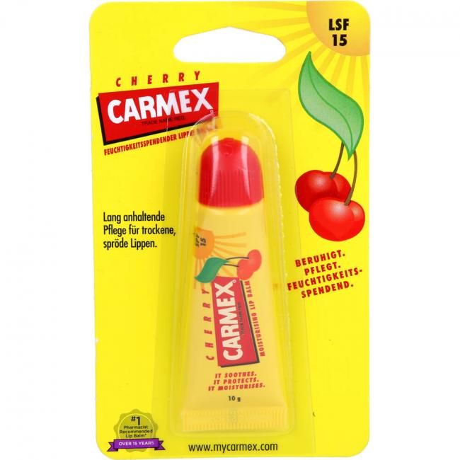 Carmex Lippenbalsam mit fruchtigem Kirschgeschmack mit LSF 15. Schöne, weiche Lippen sind kein Zufall. Mit der richtigen Pflege werden auch Ihre Lippen wunderschön.