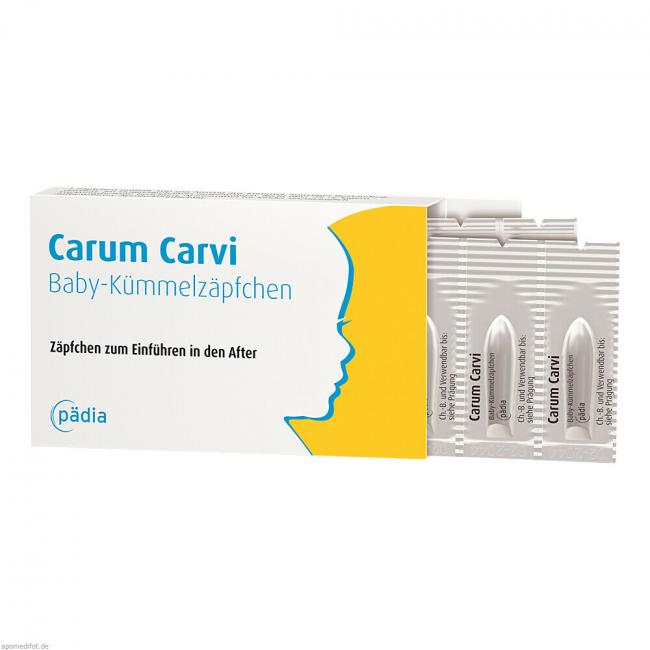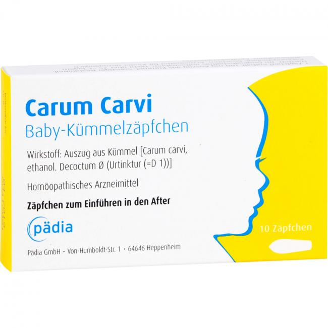 Carum Carvi Baby-Kümmelzäpfchen. Anwendungsgebiete: Registriertes homöopathisches Arzneimittel, daher ohne Angabe einer therapeutischen Indikation.
