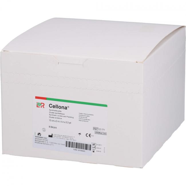 Pflichtangaben CELLONA Synthetikwatte steril 10 cmx3 m, 8 Stück