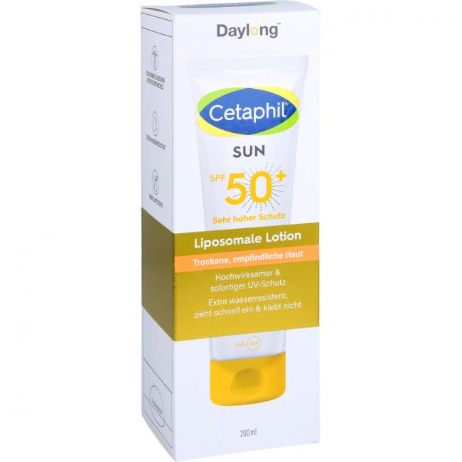 Cetaphil Sun Daylong SPF 50+ Liposomale Lotion eignet sich als Sonnencreme besonders für empfindliche oder trockene Haut. Die Cetaphil Sun liposomale Lotion lässt sich leicht verteilen, zieht schnell ein, klebt und fettet nicht. Für ein angenehmes Hautgefühl. Zudem pflegt die liposomale Lotion die Haut mit Aloe Vera und Vitamin E und spendet wertvolle Feuchtigkeit. Photostabile UV-Filter bieten hochwirksamen und sofortigen UVA- und UVB-Schutz, effektiven Zellschutz und beugen sonnenbedingter Hautalterung vor.