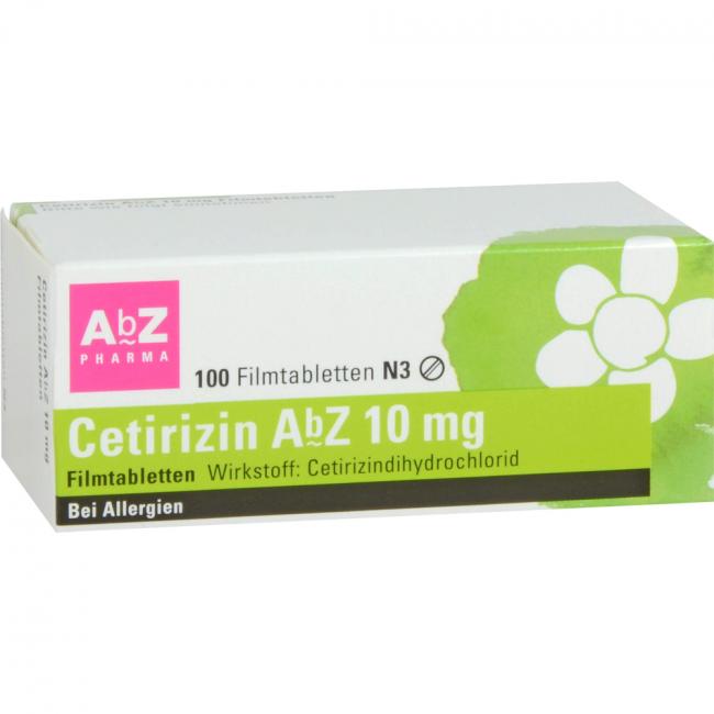 Pflichtangaben CETIRIZIN AbZ 10 mg Filmtabletten, 100 Stück