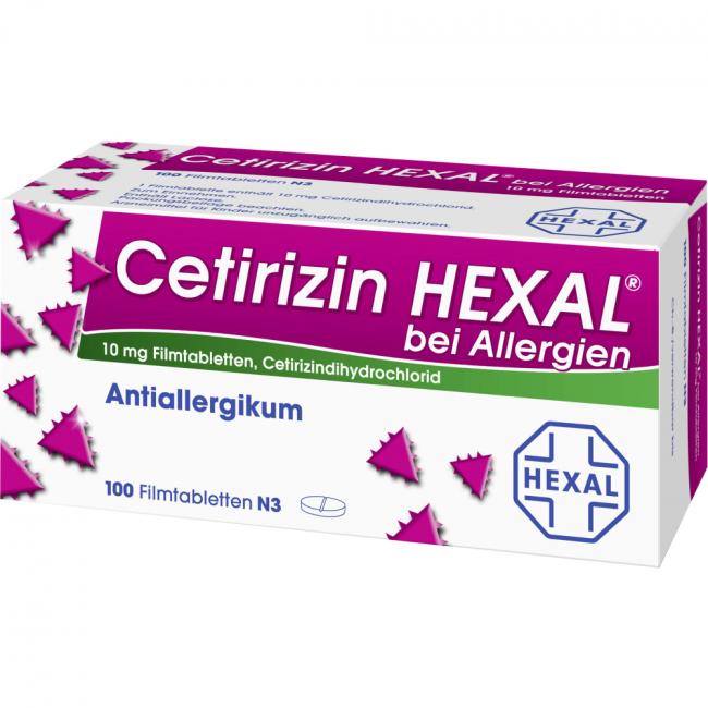 Pflichtangaben CETIRIZIN HEXAL Filmtabletten bei Allergien, 100 Stück