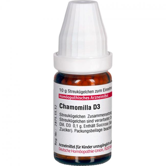Chamomilla D 3. Anwendungsgebiete: Registriertes homöopathisches Arzneimittel, daher ohne Angabe einer therapeutischen Indikation. Warnhinweis: Dieses Arzneimittel enthält Sucrose (Saccharose / Zucker).