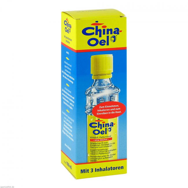 100,0 ml China-Oel enthalten arzneilich wirksamen Bestandteil 100,0 ml Pfefferminzöl.