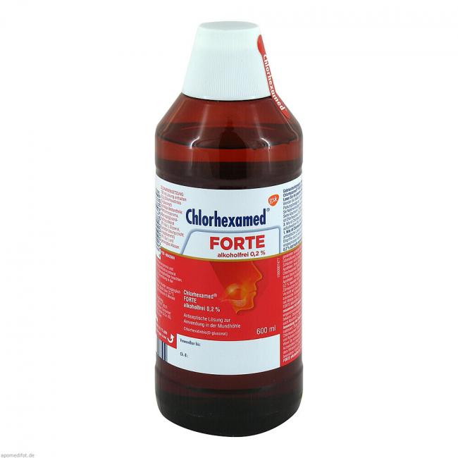 Bitte sprechen Sie mit Ihrem Arzt oder Apotheker, bevor Sie Chlorhexamed Forte 0,2% alkoholfrei anwenden. Wenden Sie Chlorhexamed Forte alkoholfrei 0,2% ausschließlich im Mund an! Wenn Chlorhexamed Forte alkoholfrei 0,2% in die Augen oder Ohren gelangt, spülen Sie diese gründlich mit Wasser aus! Schlucken Sie die Lösung nicht! Wenn Sie in Ihrem Mund ein Wundgefühl oder Reizungen bemerken, beenden Sie die Anwendung von Chlorhexamed Forte alkoholfrei 0,2% und informieren Sie Ihren Arzt oder Apotheker. Vorübergehende Verfärbungen der Zunge können auftreten. Diese Verfärbungen verschwinden, sobald die Anwendung von Chlorhexamed Forte alkoholfrei 0,2% beendet wird. Verfärbungen von Zähnen, Zahnersatz oder Zahnfüllungen können ebenfalls auftreten. Diese sind vorübergehend und lassen sich durch Zähneputzen bzw. eine professionelle Zahnreinigung entfernen. Bei Vollprothesen empfiehlt sich ein Spezialreiniger. Verfärbungen kann üblicherweise durch den Verzicht auf stark färbende Lebensmittel und Getränke wie z.B. Tee, Kaffee oder Rotwein vorgebeugt werden. Chlorhexamed Forte alkoholfrei 0,2% kann durch anionische Substanzen, die häufig ein Bestandteil handelsüblicher Zahnpasta sind, in seiner Wirkung beeinträchtigt werden. Spülen Sie deshalb Ihren Mund gründlich mit Wasser aus und warten Sie nach dem Zähneputzen mindestens 5 Minuten, bevor Sie Chlorhexamed Forte alkoholfrei 0,2% anwenden. Sie können Chlorhexamed Forte alkoholfrei 0,2% auch zeitversetzt zum Zähneputzen zu einer anderen Tageszeit anwenden.