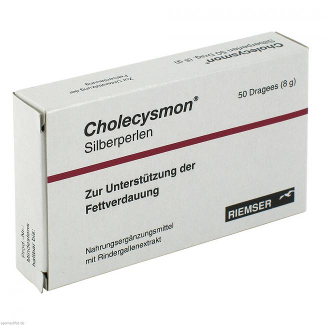 Nicht mehr als 4 Filmtabletten pro Tag verzehren. Nehmen Sie Cholecysmon Silberperlen nicht ein, wenn Sie an Erkrankungen der Verdauungsorgane, schweren Leberfunktionsstörungen, Verschluss der Gallenwege, Gallenwegserkrankungen, Gallenblasenentzündungen, Darmverschluss oder Pankreatitis leiden.