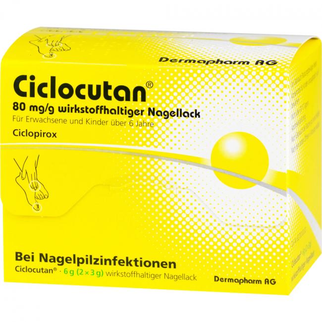 Ciclocutan Nagellack wurde speziell für die Behandlung von Nagelpilzinfektionen entwickelt. Der Wirkstoff Ciclopirox durchdringt die Nagelplatte und hat eine pilzabtötende Wirkung auf alle wichtigen Erreger, die Nagelpilzinfektionen verursachen. Ciclocutan Nagellack wird für die Behandlung von Nagelpilzinfektionen angewendet. Wenn Sie sich nach 6 Monaten nicht besser oder gar schlechter fühlen, wenden Sie sich an Ihren Arzt.