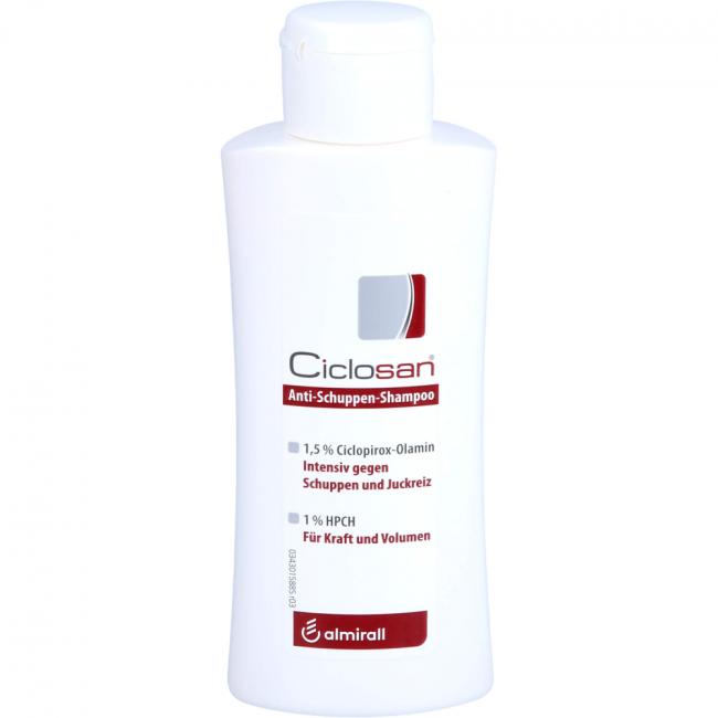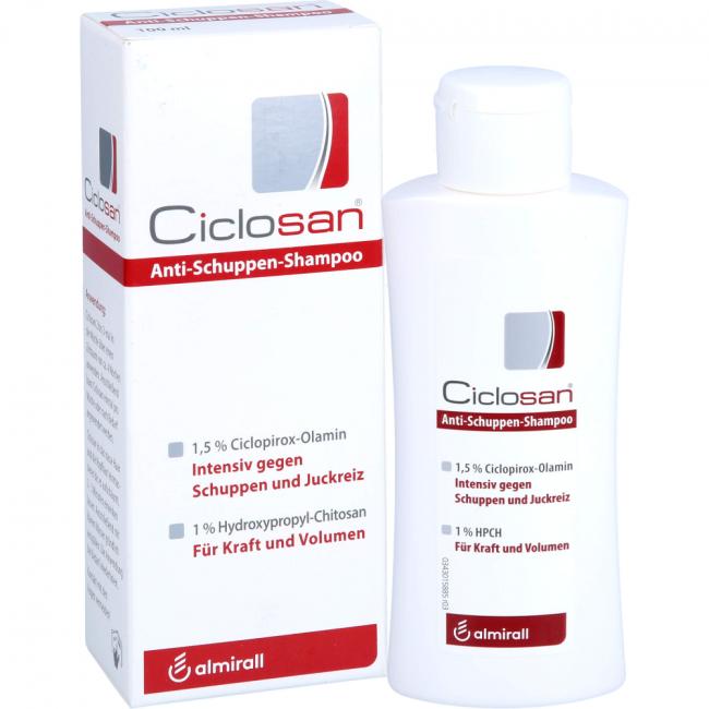 Ciclosan Anti-Schuppen-Shampoo hilft den Teufelskreis der Schuppenbildung zu durchbrechen, repariert und kräftigt die Haarstruktur. Ciclosan bekämpft hartnäckige Schuppen und regeneriert Haare und Kopfhaut. Der besonders intensive Anti-Schuppen-Wirkstoff Ciclopirox-Olamin hemmt das Wachstum von Pilzen und Bakterien und beseitigt so die Ursache für die Schuppenbildung. Ciclosan ist auf die besonderen Bedürfnisse von Haar und Kopfhaut abgestimmt.