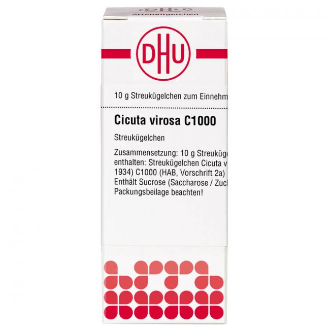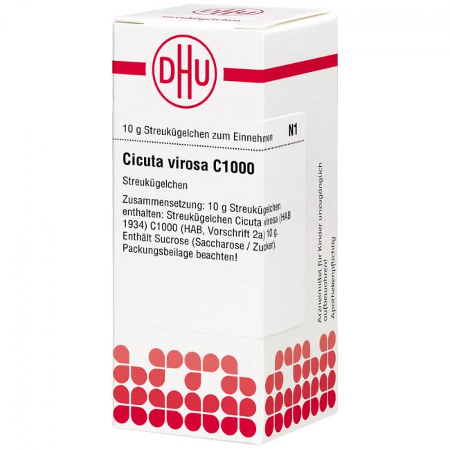 Cicuta virosa C 1000. Anwendungsgebiete: Registriertes homöopathisches Arzneimittel, daher ohne Angabe einer therapeutischen Indikation. Warnhinweis: Dieses Arzneimittel enthält Sucrose (Saccharose / Zucker).
