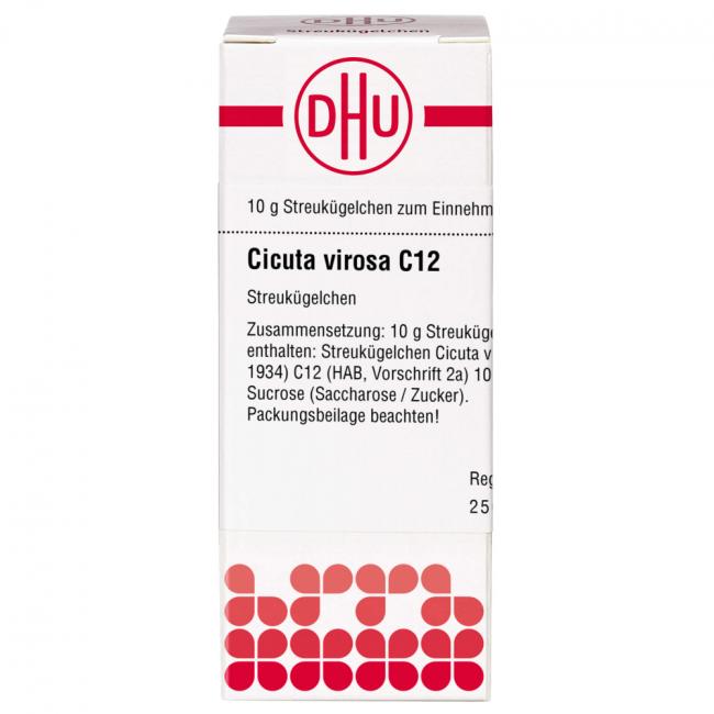 Cicuta virosa C 12. Anwendungsgebiete: Registriertes homöopathisches Arzneimittel, daher ohne Angabe einer therapeutischen Indikation. Warnhinweis: Dieses Arzneimittel enthält Sucrose (Saccharose / Zucker).