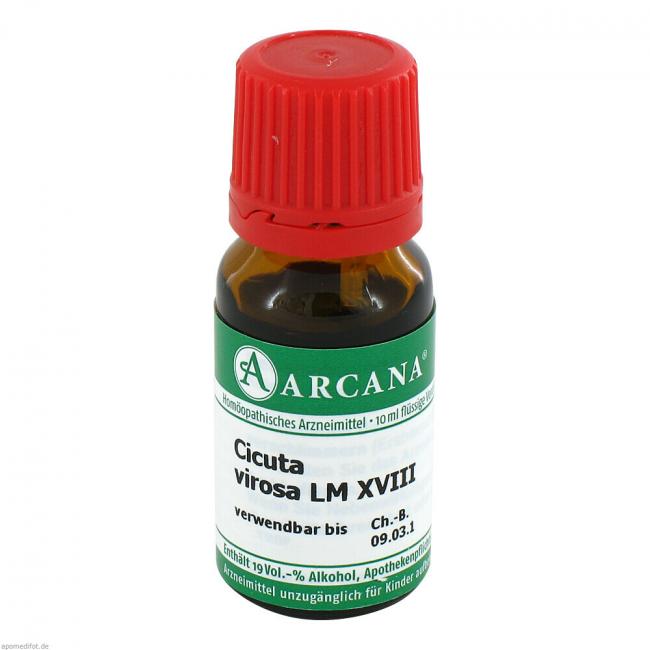 Cicuta virosa LM XVIII . Anwendungsgebiete: Registriertes homöopathisches Arzneimittel, daher ohne Angabe einer therapeutischen Indikation. Warnhinweis: Enthält 19 Vol.-% Alkohol.