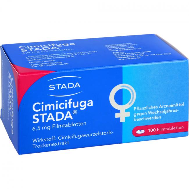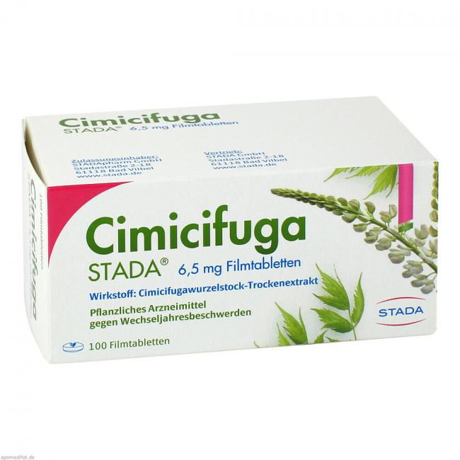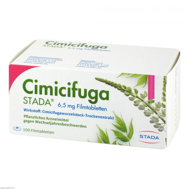 Cimicifuga Stada 6,5 mg Filmtabletten. Wirkstoff: Cimicifugawurzelstock-Trockenextrakt. Anwendungsgebiete: zur Besserung von Beschwerden, bedingt durch die Wechseljahre.