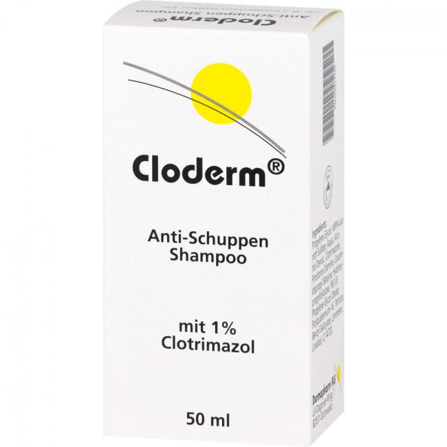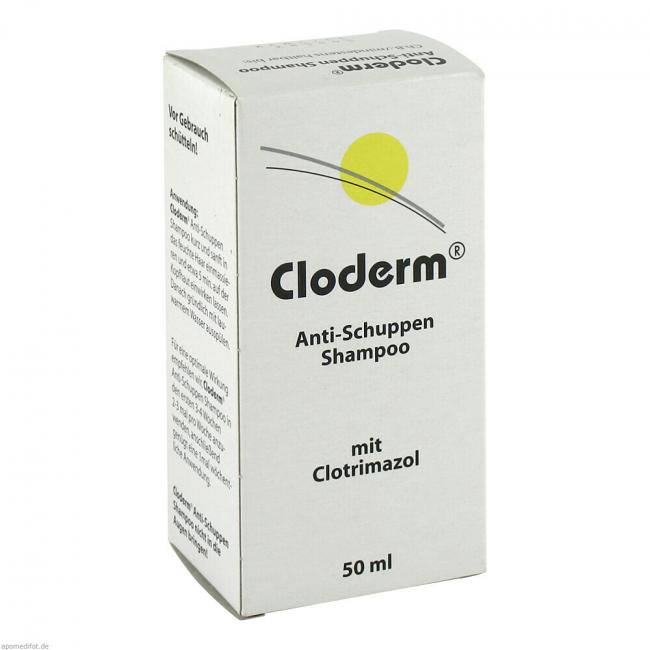Cloderm Anti-Schuppen Shampoo reinigt durch seine milden waschaktiven Substanzen Haar und Kopfhaut besonders schonend und befreit das Haar von lästigen Schuppen. Der Anti-Schuppen-Wirkstoff Clotrimazol bekämpft gezielt die Ursache übermäßiger Schuppenbildung und hilft so weiterer Schuppenbildung vorzubeugen. Die Kopfhaut erhält ihr natürliches Gleichgewicht zurück, der unangenehme Juckreiz lässt nach. Weitere Inhaltsstoffe von Cloderm Anti-Schuppen Shampoo machen das Haar leicht frisierbar, es fühlt sich geschmeidig an und sieht gepflegt aus. Bei regelmäßiger Anwendung schützt Cloderm Anti-Schuppen Shampoo nachhaltig vor Schuppenbildung.