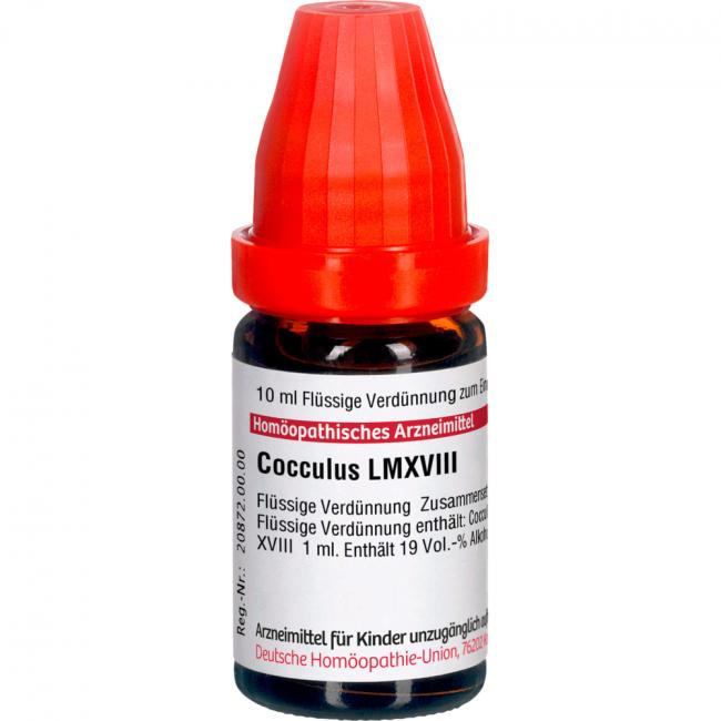 LM Cocculus XVIII. Anwendungsgebiete: Registriertes homöopathisches Arzneimittel, daher ohne Angabe einer therapeutischen Indikation. Warnhinweis: Enthält 19 Vol.% Alkohol.