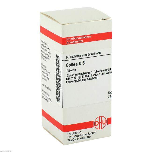 Coffea D6, Tabletten. Anwendungsgebiete: Registriertes homöopathisches Arzneimittel daher ohne Angabe einer therapeutischen Indikation.