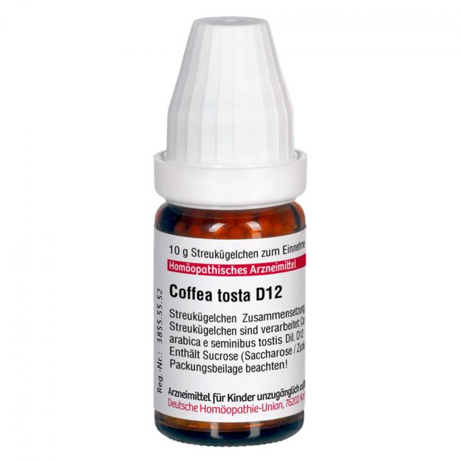 Coffea tosta D 12. Anwendungsgebiete: Registriertes homöopathisches Arzneimittel, daher ohne Angabe einer therapeutischen Indikation. Warnhinweis: Dieses Arzneimittel enthält Sucrose (Saccharose / Zucker).