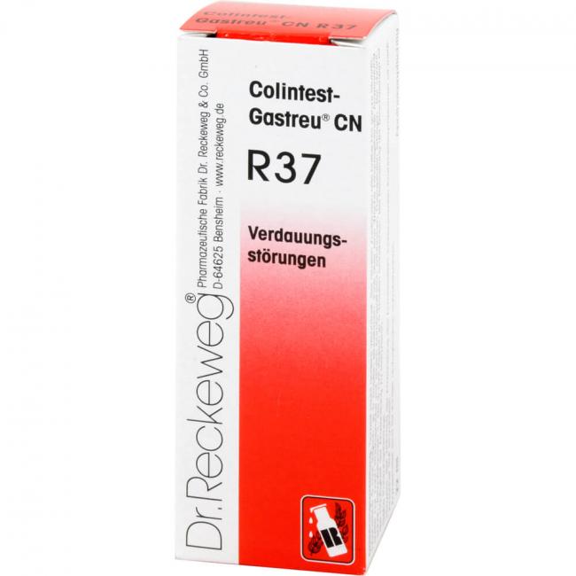 Colintest-Gastreu CN R 37. Wirkstoffe: Nux vomica Dil. D6 1 g, Sulfur Dil. D12 1 g, Lycopodium Dil. D4 1 g, Colocynthis Dil. D4 1 g. Anwendungsgebiete: Die Anwendungsgebiete leiten sich von den homöopathischen Arzneimittelbildern ab. Dazu gehören: Verdauungsstörungen mit krampfartigen Beschwerden. Warnhinweis: Dieses Arzneimittel enthält 41 Vol.-% Alkohol.