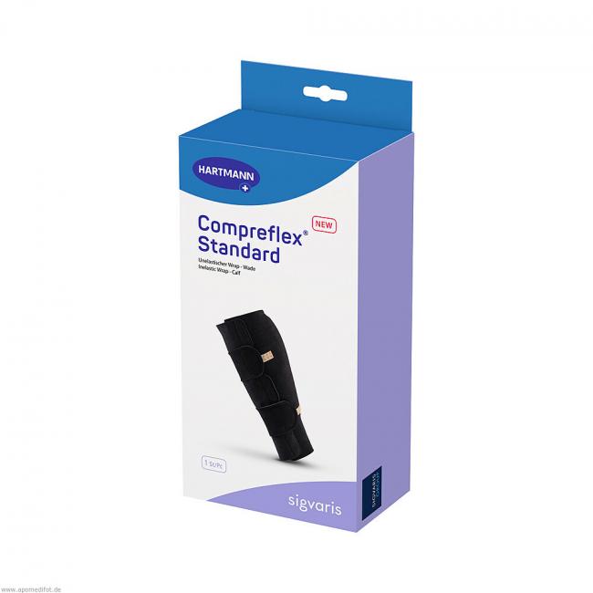 Wraps sind wiederverwendbare Kompressionsbandagen, bei welchen der Kompressionsdruck mithilfe von Klettverschlüssen oder Hakensystemen individuell eingestellt und einfach nachjustiert werden kann. Die Kompressionstherapie führt zu einer Verbesserung des venösen Rückflusses, wodurch das venöse Ödem reduziert wird. Sie wird vor allem in der anfänglichen Entstauungsphase bei ausgeprägten Venenödemen als Alternative zum Wickeln mit Verbänden eingesetzt. Dieses Medizinprodukt ist für den mehrfachen Gebrauch bestimmt und nicht steril. Der Compreflex Standard Calf ist ein unelastischer Wrap, welcher einen Kompressionsdruck von 21-46 mmHg, mit Hilfe der Accutab, gewährleistet. Das Produkt wird mit einem Paar Unterziehstrümpfen zum Schutz der Haut kombiniert.