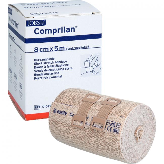 Bei Patienten mit empfindlicher oder vorgeschädigter Haut werden hohe Anforderungen an eine gute Verträglichkeit und angenehme Trageeigenschaften einer Kompressionsbinde gestellt. Comprilan verbindet die ideale Druckwirkung einer Kurzzugbinde mit den positiven Trageeigenschaften einer reinen Baumwollbinde. Comprilan ist hautverträglich, verfügt über ca. 90% Längsdehnung bei niedrigem Ruhedruck und hohem Arbeitsdruck. Sie unterstützt und aktiviert die Muskelpumpe und ist äußerst strapazierfähig und haltbar ohne Ausfransen der Bindenenden. Comprilan besteht zu 100% aus Baumwolle und ist mehrfach waschbar.