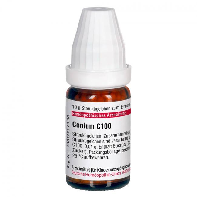 Conium C 100. Anwendungsgebiete: Registriertes homöopathisches Arzneimittel, daher ohne Angabe einer therapeutischen Indikation. Warnhinweis: Dieses Arzneimittel enthält Sucrose (Saccharose / Zucker).