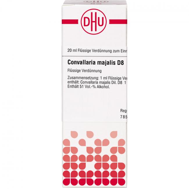 Convallaria Majalis D 8. Anwendungsgebiete: Registriertes homöopathisches Arzneimittel, daher ohne Angabe einer therapeutischen Indikation. Warnhinweis: Enthält 51 Vol.% Alkohol.
