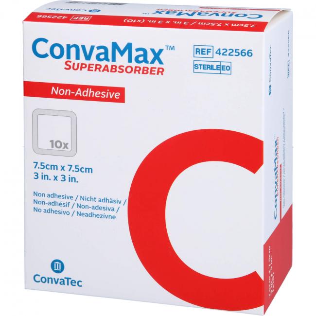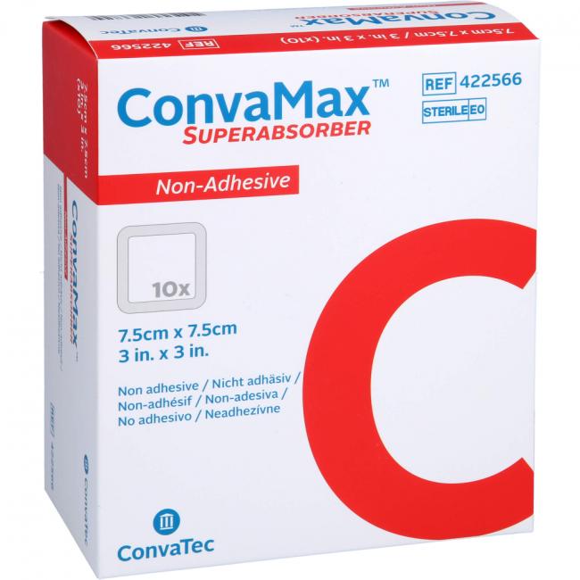Pflichtangaben CONVAMAX Superabsorber nicht adhäsiv 7,5x7,5 cm, 10 Stück