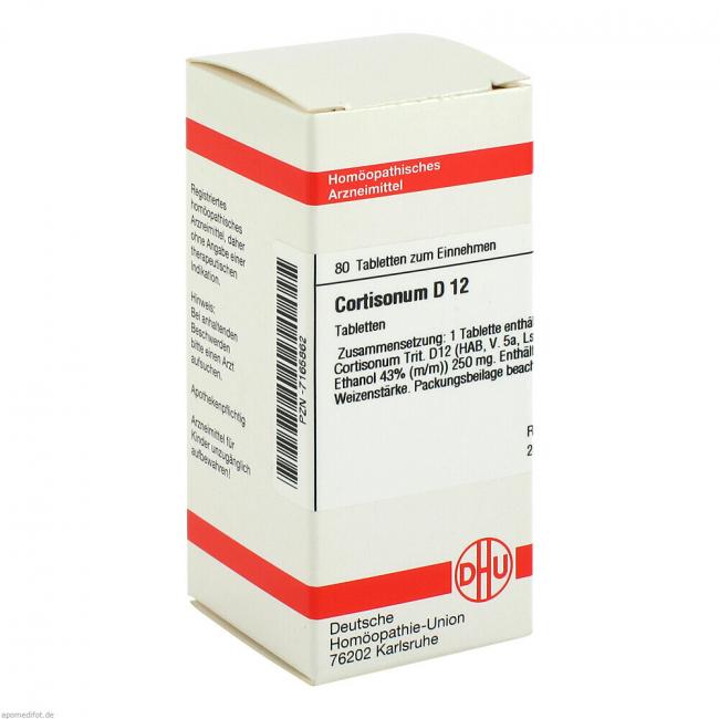 Cortisonum D 12. Anwendungsgebiete: Registriertes homöopathisches Arzneimittel daher ohne Angabe einer therapeutischen Indikation. Warnhinweis: Enthält Lactose (Milchzucker) und Weizenstärke.