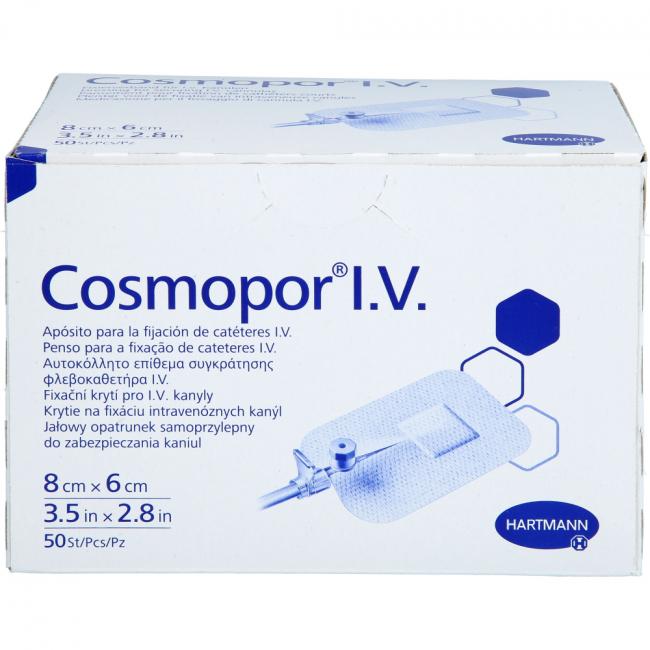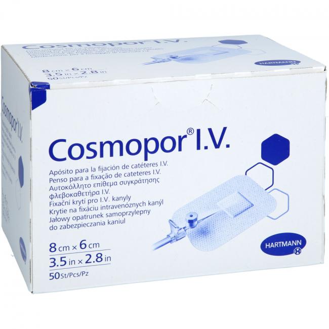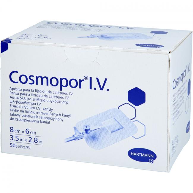 Pflichtangaben COSMOPOR I.V. Kanülenfixierverband 6x8 cm, 50 Stück