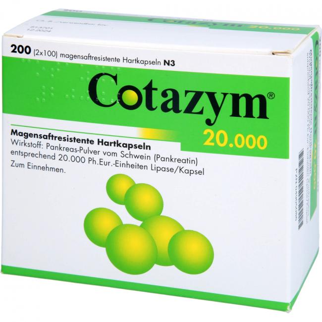 Cotazym 20.000 ist ein Gemisch aus Verdauungsenzymen, die aus Bauchspeicheldrüsen vom Schwein gewonnen werden (Pankreasenzyme).